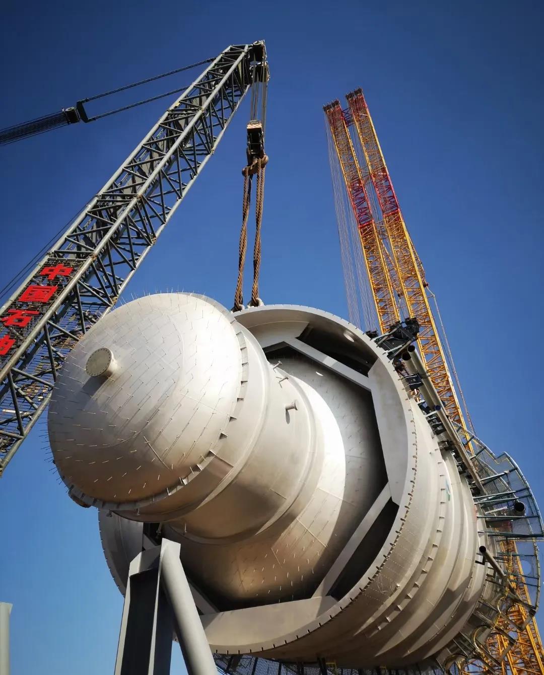 Le 18 janvier, le projet de raffinage et de levage de Shenghong PetroChina First Construction Company a adopté la « méthode de levage par grue » de la grue à chenilles principale de 4 000 tonnes, du glissement de queue de 1 350 tonnes, du faisceau d'équilibrage de 2 000 tonnes et de l'anneau sans soudure de 276 diamètres fournis par lking Steel Co., Ltd.L'Unit é de distillation atmosphérique et sous vide du projet d'intégration du raffinage et de l'industrie chimique de Shengli a été relevée avec succès, avec un diamètre de 14 mètres, une hauteur de 58 mètres et un poids de levage de 1 717 tonnes.