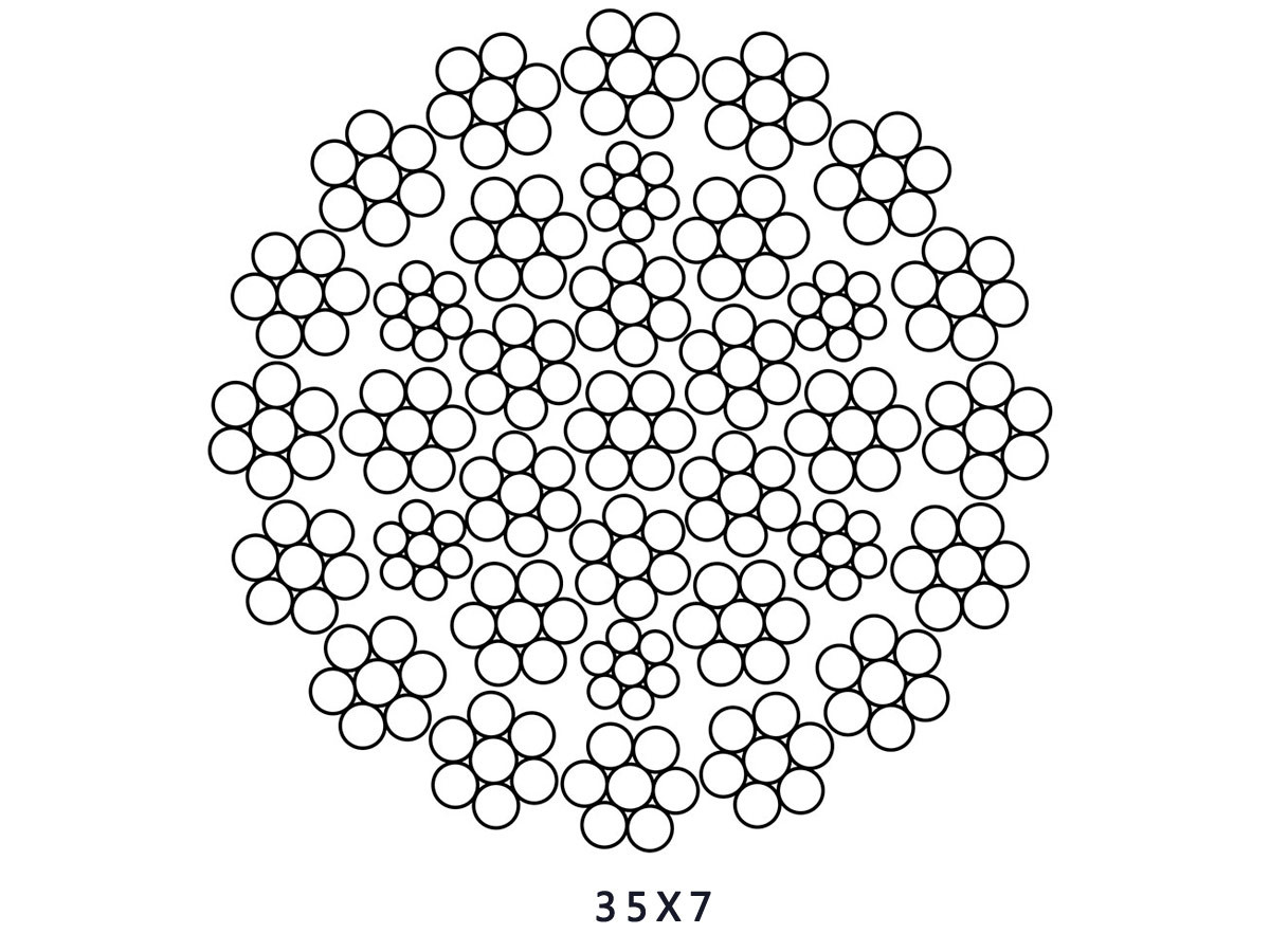 Dans la norme nationale, le câble métallique 35W*7 est principalement divisé en deux genres de structure, on est 35W*7, on est 24W*7, et la corde de fil d'acier est produite par le vrillage posé, la production du câble métallique est d'abord couche intérieure, puis la couche externe et deux torsions sont faites. Ce genre de câble métallique est actuellement employé dans le mécanisme de levage ayant beaucoup d'étages, tel que la grue à tour, grue à tour et ainsi de suite. Beaucoup d'usines de grue à tour définissent 35W*7 comme câble métallique spécial pour la grue à tour, particulièrement dans la machine de construction de Guangxi, construction de Sichuan, construction de Shenyang, machine de construction de Pékin, marché de machine de construction de Changhaï et ainsi de suite, les spécifications communes 12mm/13mm/14mm/16mm/18mm /20mm de câble métallique de grue à tour. Le prix de 35W*7 est plus cher que celui de l'autre câble métallique avec le point de contact et la ligne contact, même dépassant le câble métallique de la machine d'empilage.