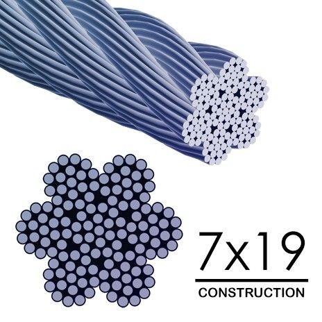 le câble d'avions galvanisé par 7x19 est préféré quand la force et la flexibilité élevée sont nécessaires. La construction inclut 7 fils avec 19 fils par fil en acier galvanisé, créant un câble en acier fort qui est flexible et résistant à la corrosion. Ce câble métallique de faible diamètre n'est pas prévu pour l'usage d'avions, mais est conçu pour des applications industrielles, agricoles et marines.