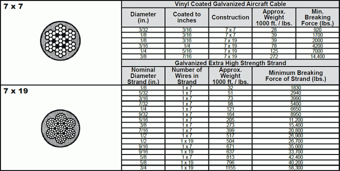 3/16 " (7x19) Résistance à la rupture 4200lb Galvanisé Aircraft Cable Vinyl enduit à 1/4 "