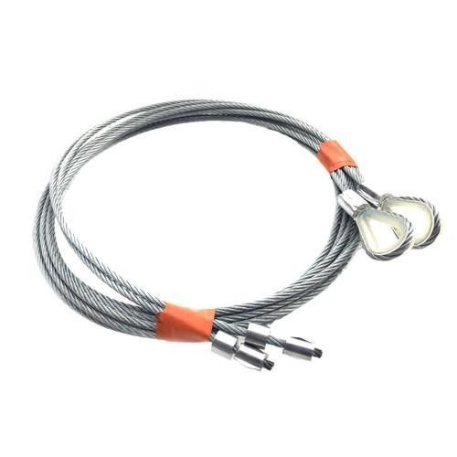 La paire résidentielle de torsion câble pour les portes de haut de garage de 7 pi. Les avions évaluent le câble de 1/8 pouce avec des douilles d'extrémité pour l'attachement aux tambours et aux boucles de barre de torsion qui attachent aux parenthèses faisantes le coin inférieures. Ce câble de porte de garage est fait pour une porte standard d'ascenseur avec un système de ressort de torsion. Cela fonctionne pour toutes les portes résidentielles de garage 7ft hauts qui a des ressorts de torsion. Les câbles de porte de garage sont 1/8" profondément fait avec le câble galvanisé d'avions et sont 8' 4" long.