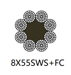 SWS standard du câble métallique de levage de JIS/ASTM 8 x 55, mettent en parallèle la corde étendue
