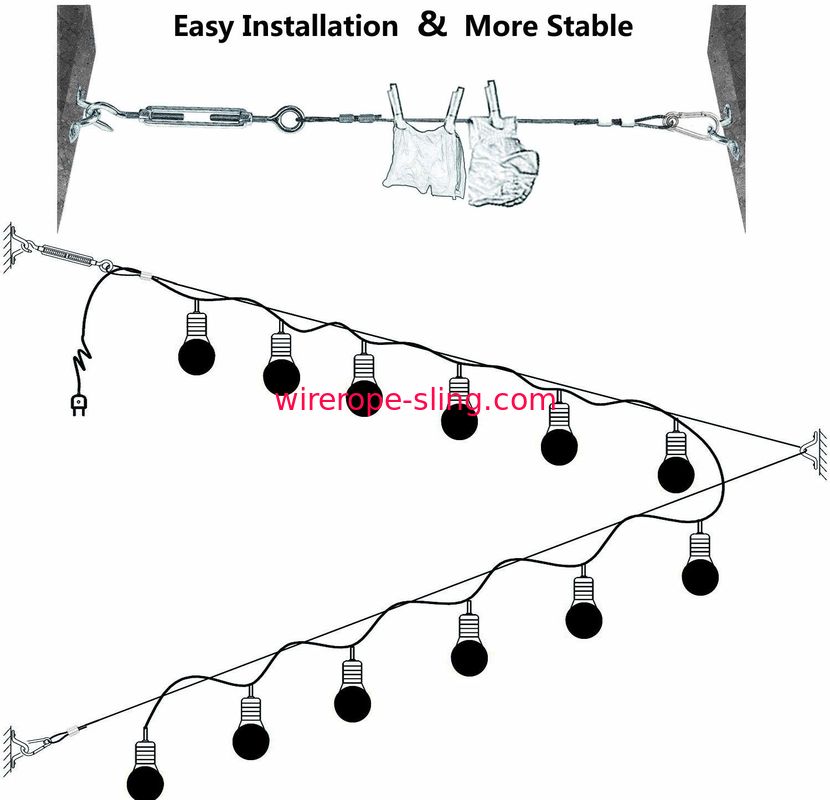 Cet ensemble aide à empêcher les lumières de fléchissement de ficelle et est idéal pour des plate-formes, des patios, des cafés, des bistros et l'éclairage de paysage