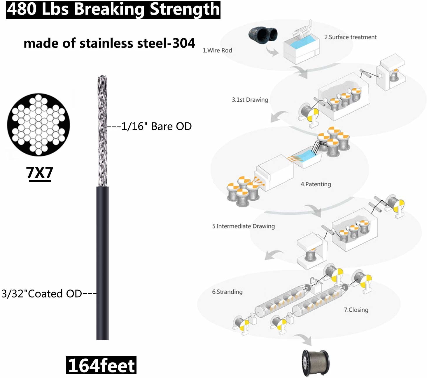 164 pi de câble Picovolte-enduit d'acier inoxydable