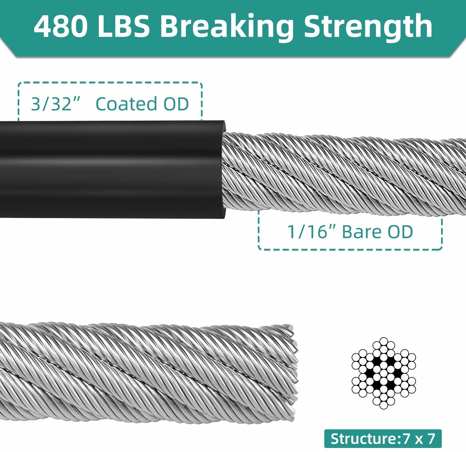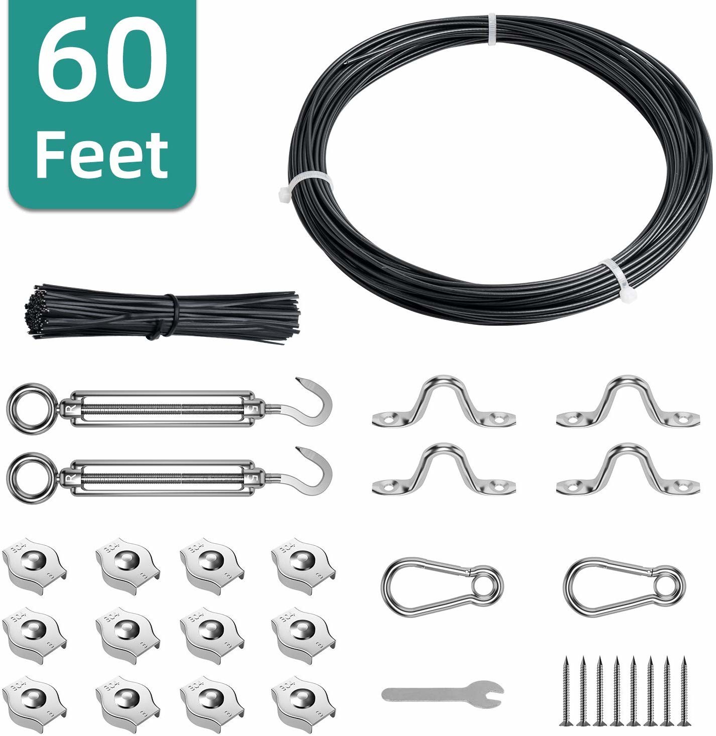 Lumières de ficelle de LKS accrochant le kit, câble facile de suspension de lumières d'installation de 60ft, kits Vinyle-enduit de fil d'acier inoxydable de noir universel 304 pour le patio et la piscine d'arrière-cour