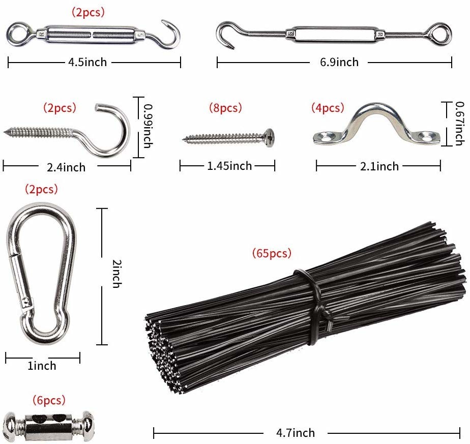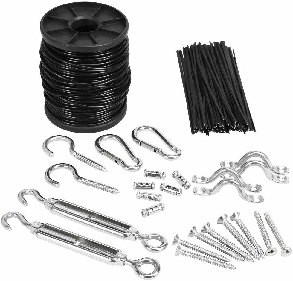 Chaque longueur de câble de câble métallique 164 pieds, câble PVC-enduit est faite d'acier inoxydable 304 (7*7), elle est ferme et inoxydable. Utilisez les accessoires supplémentaires pour enrouler autour des piliers, arbres, poutrelles ce que vous voulez pour accrocher l'environnement, simple et portatif pour réaliser un système de la suspension fixe solide de câble.