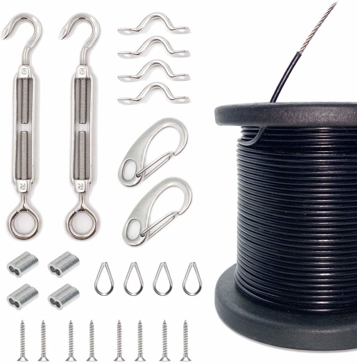 Kit de suspension de lumière de ficelle de globe, fil de guide léger extérieur, kit de câblage accrochant d'acier inoxydable, 110 pi avec des lanternes et crochets