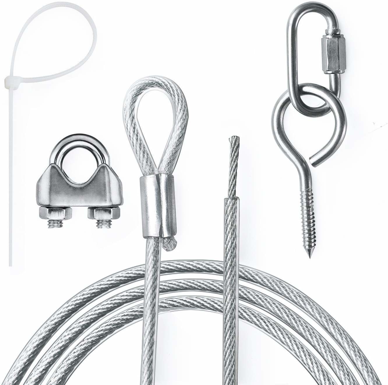 Les crochets en acier galvanisés extérieurs accrochants de vis de cuir embouti de fil de boucles de tour de liens de fermeture éclair de câble de fil de guide léger de kit de ficelle de LKS 60Ft de suspension extérieure de lumière incluent